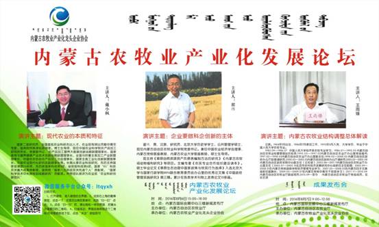 綠博會(huì)期間,由自治區(qū)農(nóng)牧業(yè)廳主辦、內(nèi)蒙古農(nóng)牧業(yè)產(chǎn)業(yè)化龍頭企業(yè)協(xié)會(huì)承辦的內(nèi)蒙古農(nóng)牧業(yè)產(chǎn)業(yè)化發(fā)展論壇如期舉行。論壇旨在推動(dòng)現(xiàn)代農(nóng)牧業(yè)發(fā)展方式轉(zhuǎn)變,聚焦農(nóng)牧業(yè)供給側(cè)結(jié)構(gòu)性改革和互聯(lián)網(wǎng)+發(fā)展思路,邀請區(qū)內(nèi)外農(nóng)牧業(yè)領(lǐng)域知名專家和學(xué)者現(xiàn)場傳授,共同探討,共享綠博會(huì)成果,共商產(chǎn)業(yè)發(fā)展大計(jì)。論壇同期發(fā)布第四屆內(nèi)蒙古名優(yōu)特農(nóng)畜產(chǎn)品和第三屆包裝設(shè)計(jì)大賽評審結(jié)果,內(nèi)蒙古日報(bào)、農(nóng)民日報(bào)82日第四版同時(shí)公布獲獎(jiǎng)名單,敬請關(guān)注。