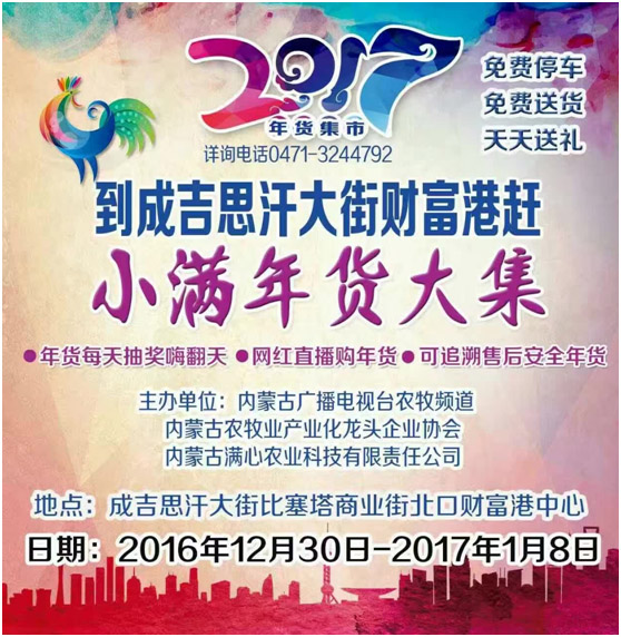 1230日,經(jīng)過(guò)精心籌備策劃的內(nèi)蒙古廣播電視臺(tái)農(nóng)牧頻道小滿年貨大集終于精彩亮相青城與廣大市民群眾見(jiàn)面了。年貨大集現(xiàn)場(chǎng),140家參展企業(yè)上千種產(chǎn)品競(jìng)相亮相,本次活動(dòng)由內(nèi)蒙古農(nóng)牧業(yè)產(chǎn)業(yè)化龍頭企業(yè)協(xié)會(huì)攜手內(nèi)蒙古廣播電視臺(tái)農(nóng)牧頻道和內(nèi)蒙古滿心農(nóng)業(yè)科技有限責(zé)任公司共同打造,搭建一個(gè)展示企業(yè)形象、宣傳地方產(chǎn)品、溝通產(chǎn)銷渠道、擴(kuò)大消費(fèi)需求、活躍節(jié)日市場(chǎng)的經(jīng)濟(jì)平臺(tái),營(yíng)造溫馨舒適、品種齊全、質(zhì)優(yōu)價(jià)廉、安全可靠、熱鬧紅火的節(jié)日購(gòu)物氛圍,讓全區(qū)老百姓不用東奔西走就能購(gòu)買(mǎi)到內(nèi)蒙古的新鮮蔬菜、瓜果、乳肉、糧油等特色農(nóng)畜產(chǎn)品,采購(gòu)到豐富的鄉(xiāng)土年貨、進(jìn)口食品、日用副食等,豐富首府百姓的菜籃子。