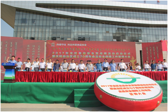 6月30日上午,2017年內(nèi)蒙古食品安全宣傳周活動(dòng)啟動(dòng)儀式暨自治區(qū)成立70周年慶祝活動(dòng)食品安全保障工作動(dòng)員誓師大會(huì)在呼和浩特國(guó)際會(huì)展中心舉行。本屆食品安全宣傳周以“尚德守法 共治共享 食品安全”為主題,通過(guò)深入宣傳《中華人民共和國(guó)食品安全法》及相關(guān)配套法律法規(guī),普及食品安全知識(shí),營(yíng)造良好的社會(huì)輿論氛圍,推動(dòng)食品安全工作共治與共享。