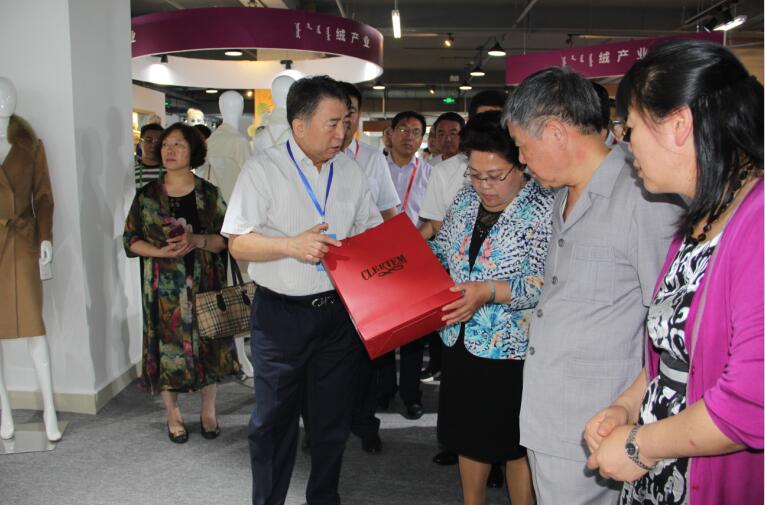 協(xié)會副會長、維信(內(nèi)蒙古)羊絨集團(tuán)有限公司董事長為艾麗華副主席等領(lǐng)導(dǎo)介紹企業(yè)情況
