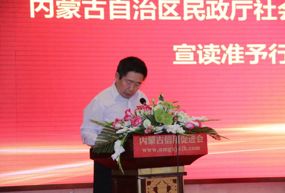 內(nèi)蒙古自治區(qū)民政廳社會(huì)組織管理局局長(zhǎng)韓少俊宣讀準(zhǔn)予行政許可決定書(shū)