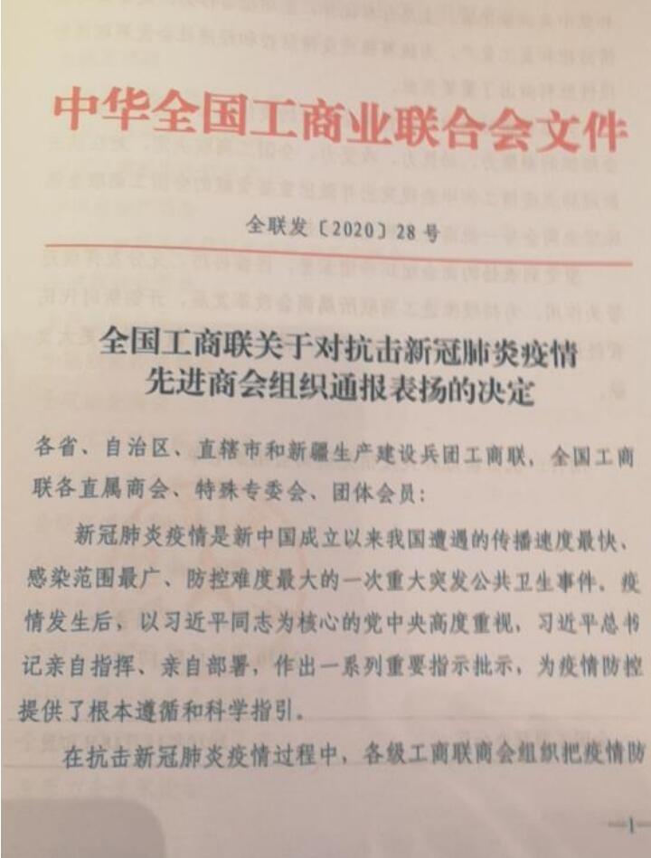 標(biāo)題:“抗擊新冠肺炎疫情先進商會” 既是榮譽,也是前行的動力