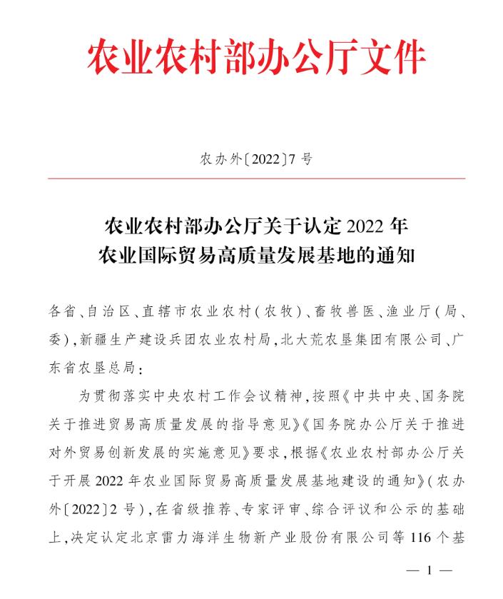 祝賀:我區(qū)5家企業(yè)被認定為2022年度農業(yè)國際貿易高質量發(fā)展基地