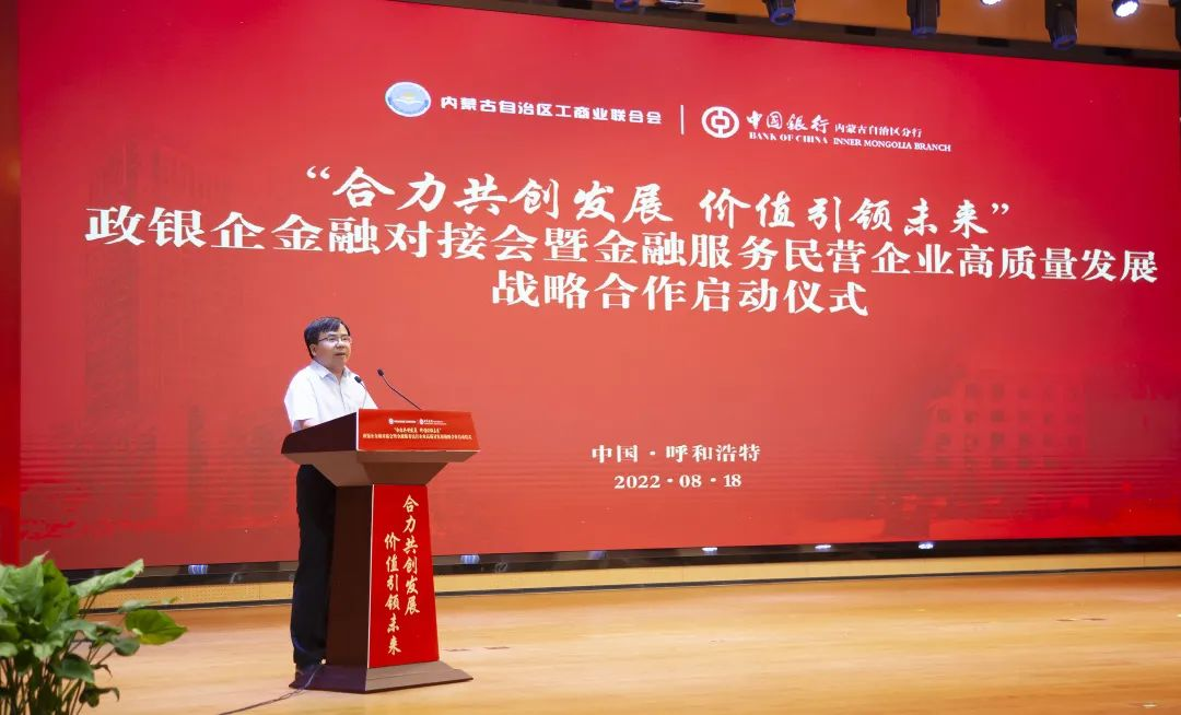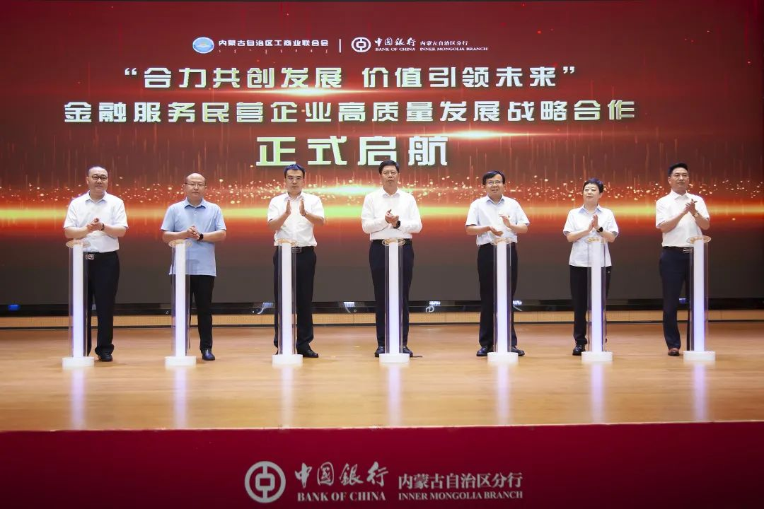 在與會人員的共同見證下,中國銀行內(nèi)蒙古自治區(qū)分行與自治區(qū)工商聯(lián)金融服務(wù)民營企業(yè)高質(zhì)量發(fā)展戰(zhàn)略合作正式啟航。