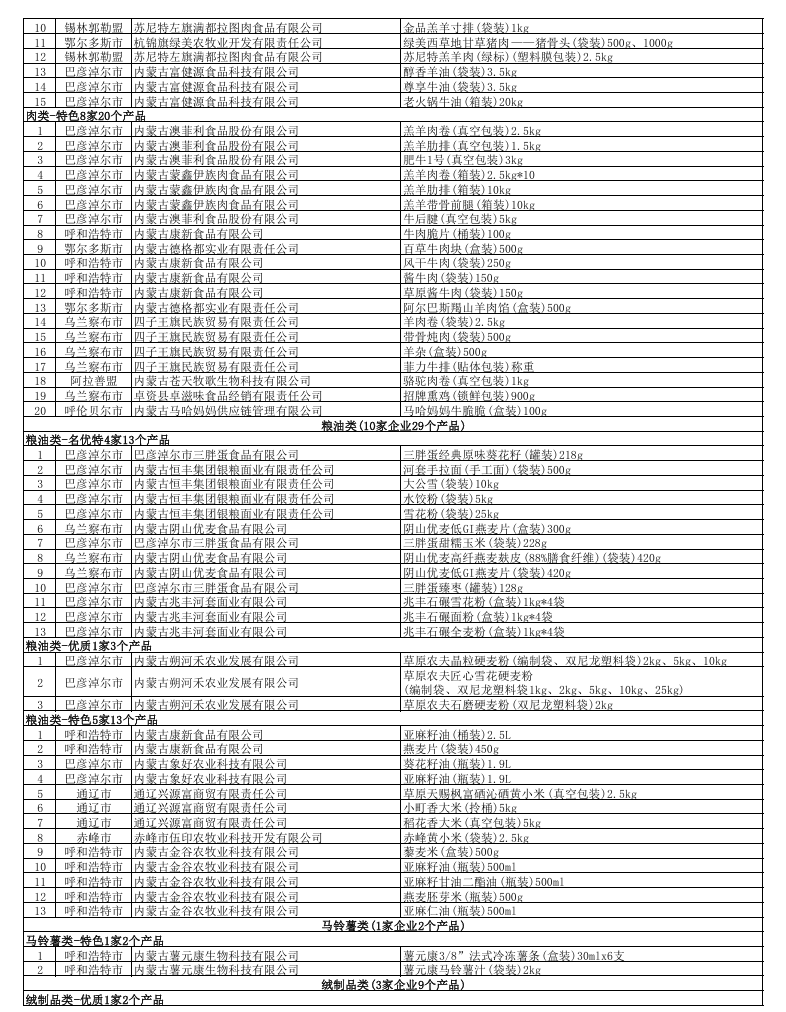 2025第十三屆內(nèi)蒙古“名優(yōu)特”農(nóng)畜產(chǎn)品名單公告