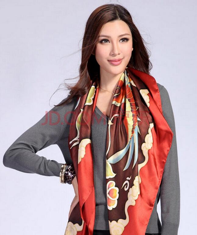 產品名稱:鹿王羊絨官方正品 春夏真絲大方巾春夏桑蠶絲女士絲巾圍巾咖紅色鳳凰(咖紅)