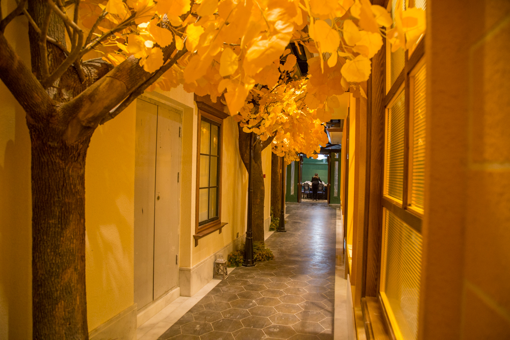 整個店面以場景式的設(shè)計手法將整體空間分為春、夏、秋等景致,整體空間層次分明,色彩豐富多變,置身其間,彷佛從一個空間穿梭到另一個空間,每一次進入餐廳都會帶來不一樣的就餐體驗。