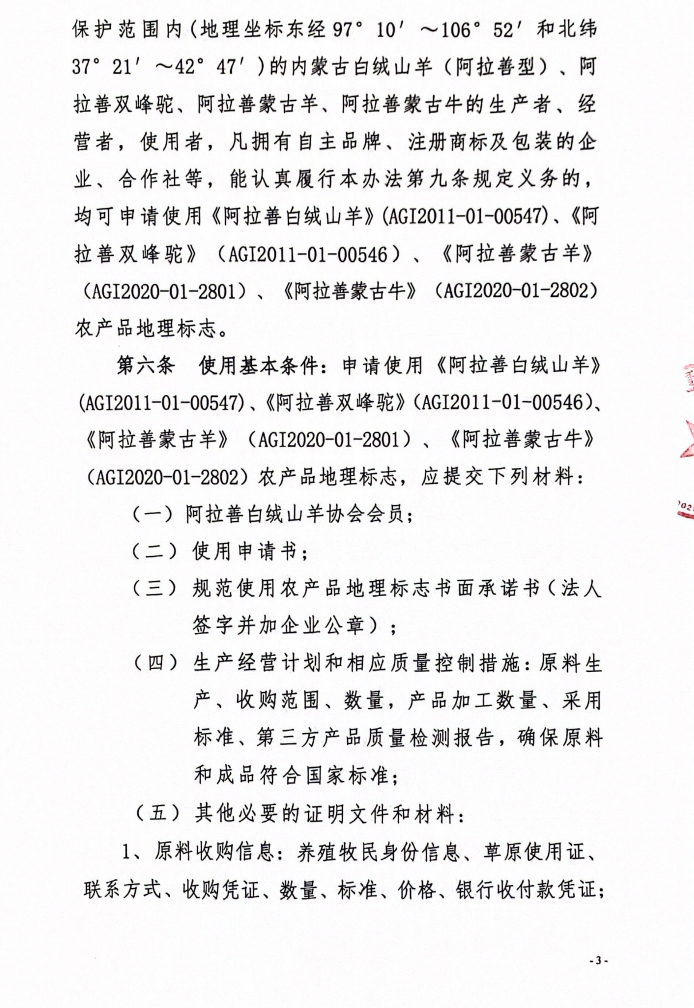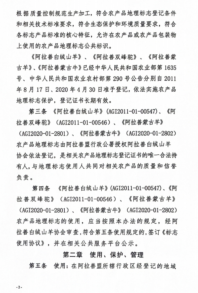 阿拉善白絨山羊協(xié)會所持有農(nóng)產(chǎn)品地理標志管理辦法(試行)