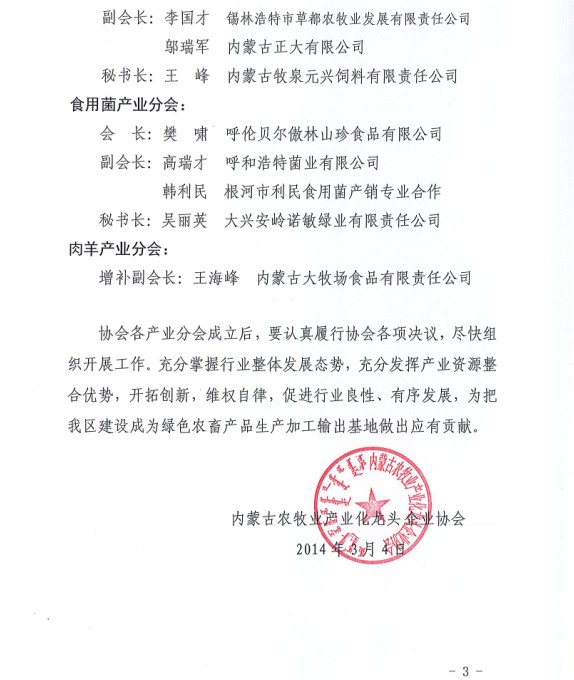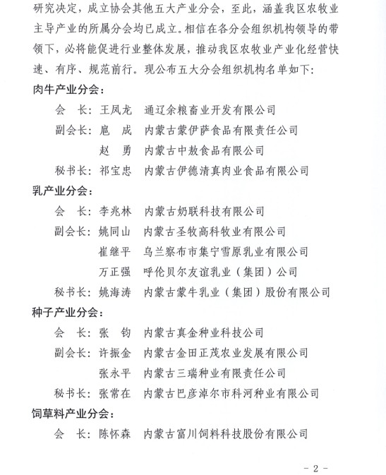 關(guān)于成立內(nèi)蒙古農(nóng)牧業(yè)產(chǎn)業(yè)化龍頭企業(yè)協(xié)會(huì)各大產(chǎn)業(yè)分會(huì)的通知