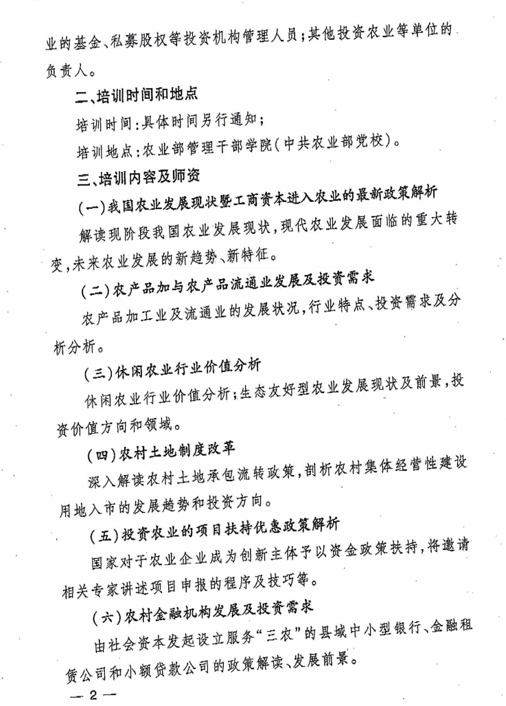 轉(zhuǎn)發(fā)“關(guān)于舉辦農(nóng)業(yè)投資前景高級研討班的通知”