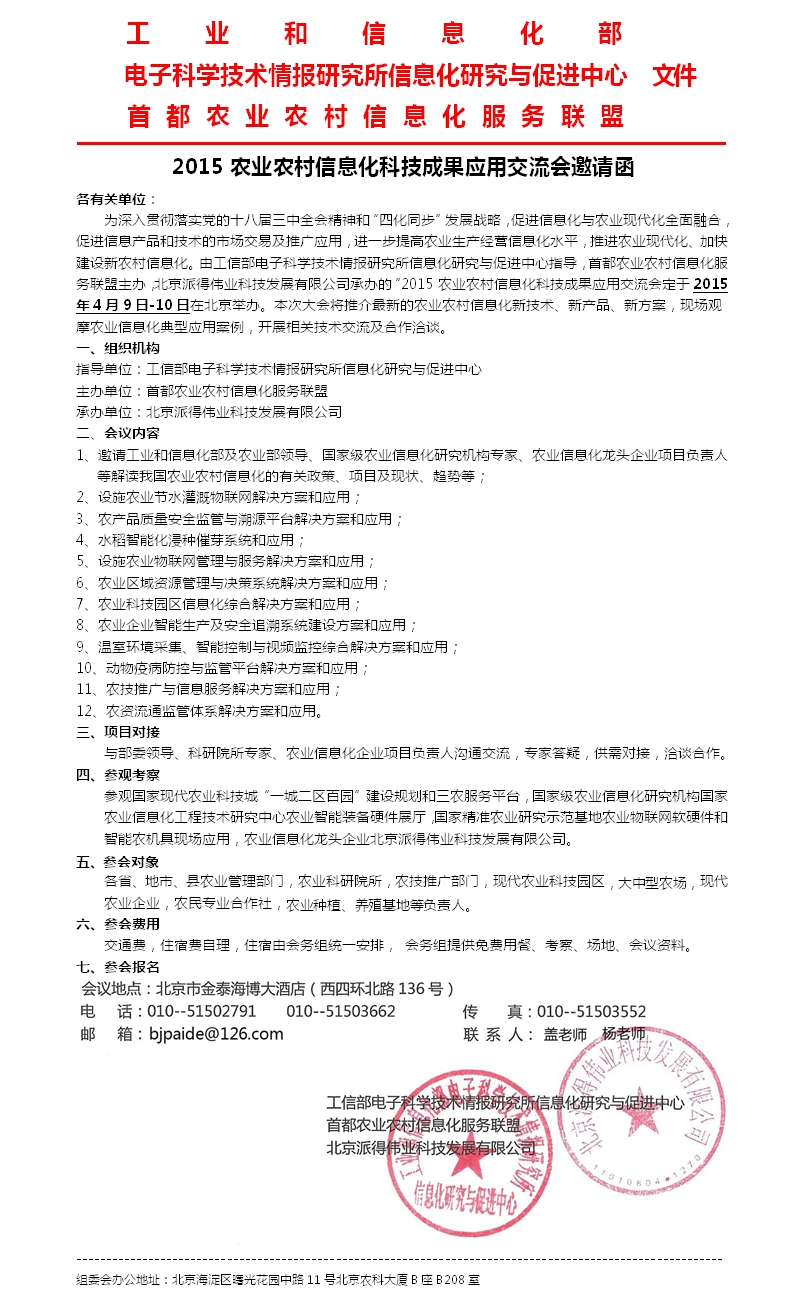 關(guān)于組織會員企業(yè)參加2015農(nóng)業(yè)農(nóng)村信息化科技成果應(yīng)用交流會的通知