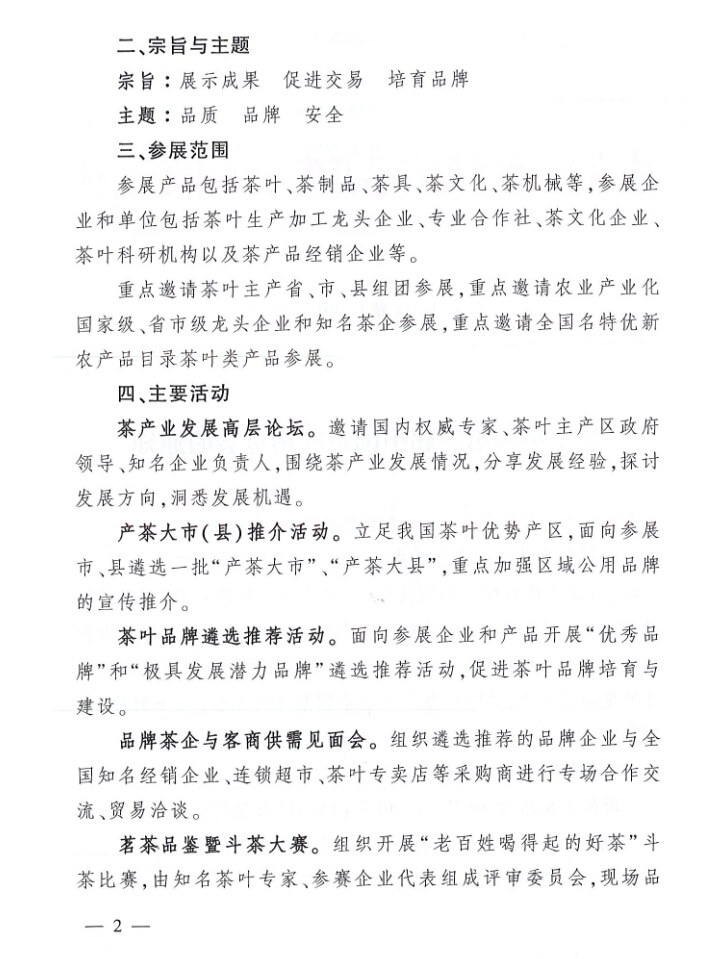 關(guān)于舉辦第三屆中國茶葉博覽會(huì)的通知