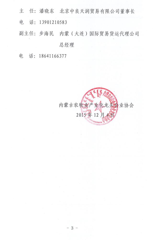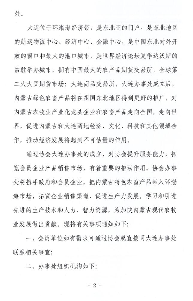 關于成立內蒙古農牧業(yè)產業(yè)化龍頭企業(yè)協會大連辦事處的通知