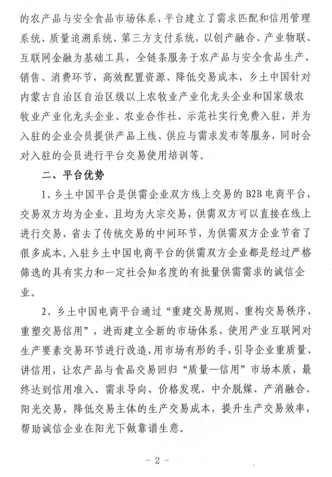 關(guān)于入駐鄉(xiāng)土中國首家安全食品產(chǎn)業(yè)電商平臺(tái)的通知