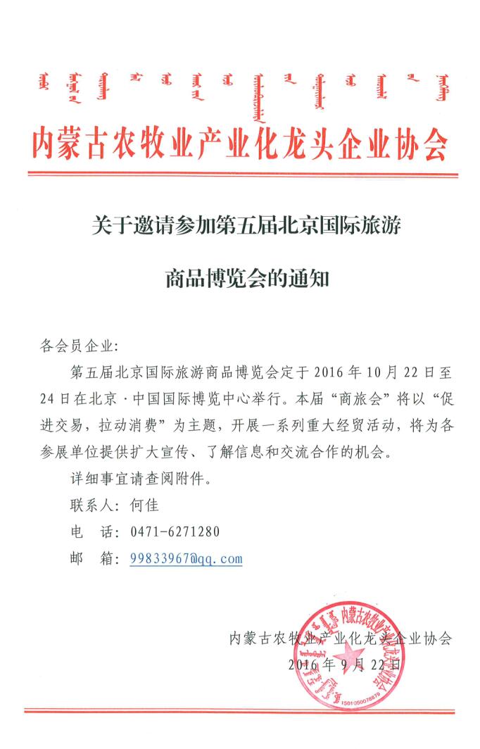 關(guān)于邀請參加第五屆北京國際旅游商品博覽會的通知