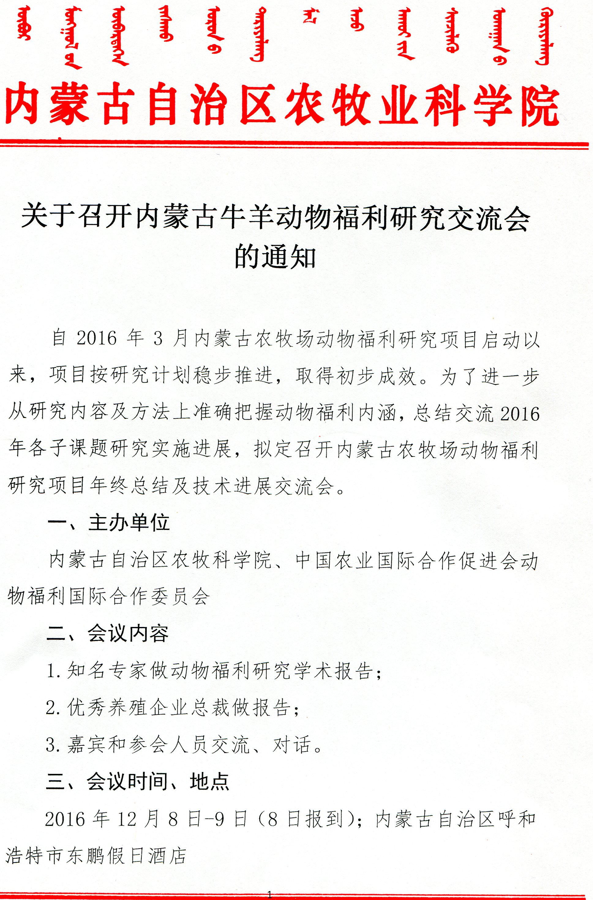 轉(zhuǎn)發(fā):關(guān)于內(nèi)蒙古牛羊動物福利研究交流會的通知