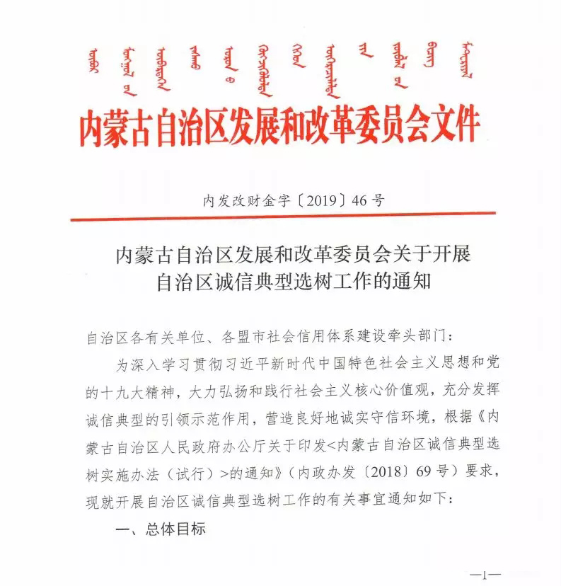 內(nèi)蒙古自治區(qū)發(fā)展和改革委員會關(guān)于開展自治區(qū)誠信典型選樹工作的通知